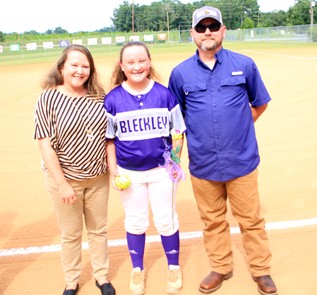 Kaylee Rae Barrs escorted by Brandi and Brandon Barrs.