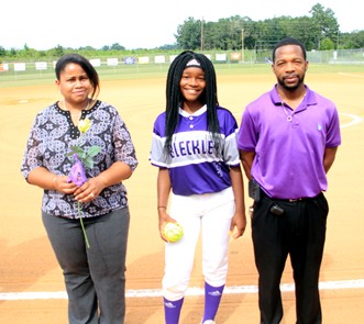 Jaylin Dollar escorted by Stephanie Dollar and Ronnie Dollar.