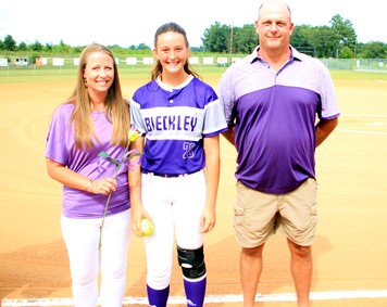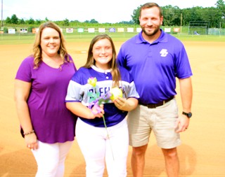 Cayleigh Francis escorted by John and Michelle Markl.