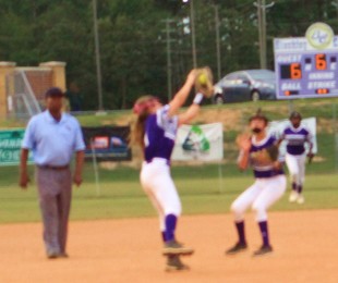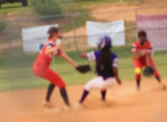 Kaylee Rae Barrs takes the unassisted out at first base.