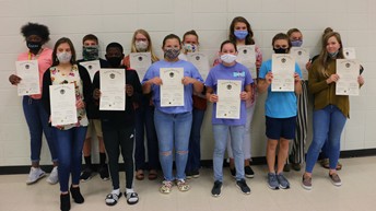 The following students were inducted. Sixth grade: Alex Gillis, Aliya Jenkins, Annabelle Land, AnnaKate Wall, Aubrey Bugg, Christopher Barlow, Conner Spielman, Elisabeth Conley, Everett Childers, Gaige Carnes, Jadyn Tarpley, Jay Faulk, Josie Lanfair, Kale Adkins, Lily Farrell, Madison Sanders, Presley Goins, Preston Lucas, Sarah Collins, Taylor Herndon, Wade Phagan.
