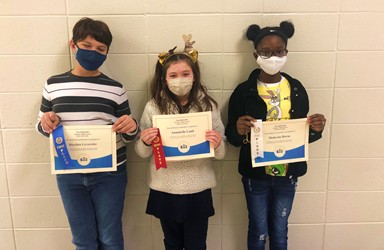 Sixth grade winners. Third place: Shakeria Horne. Second place: Annabelle Land. First place: Hayden Leverette.