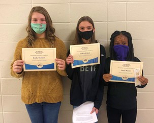 Seventh grade winners. Third place: Amya Rozier. Second place: Cadyn Wilson. First place: Emily Maddox.