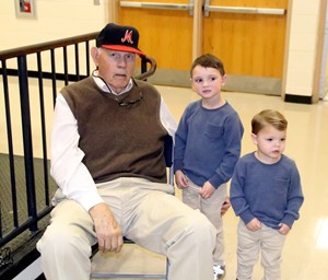 | Former Middle Georgia College men's basketball coach Ben Rogers was at the game to support his grandson, former Royals player Tyler Rogers, an assistant with the Raiders boys team. Coach Rogers is pictured with his great grandsons Brooks and Bowden. |