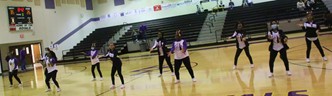 The basketball squad cheerleaders performed at halftime of the boys game.