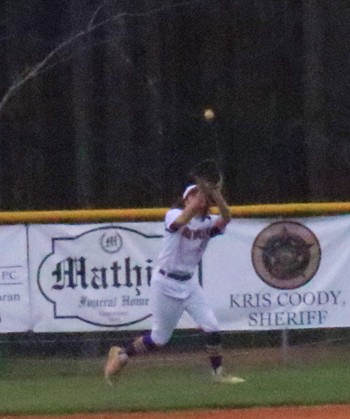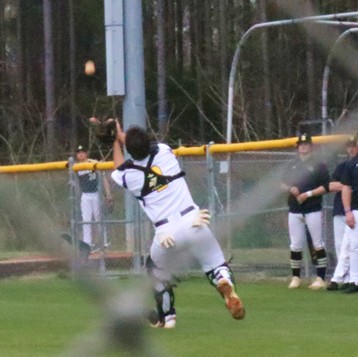 | Ethan Hulsey tracks down a ball in right field. |