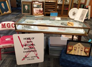 An impressive archive, with items pictured here, including an original cloth map of a colored section of a cemetery in Cochran, baseball bats from Warrior baseball championships, corner stones from original Ebenezer School before it burned and much more, is in the process of being organized and displayed for community and college members.