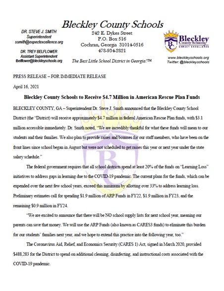 Information about upcoming Bleckley Primary Field Day.