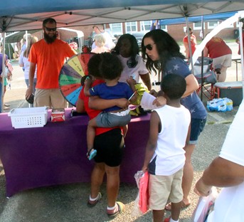 The event was sponsored by Communities in Schools/Family Connection. Bleckley Christian Learning Center, Cochran Bleckley Chamber of Commerce, and the Bleckley NAACP. As people arrived, they registered at a table to receive tickets for a backpack as well as free snow cone.