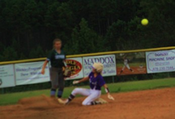 | Rebecca Bowling beats the ball to second base. |