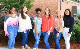 | Underclassmen Court (L-R): BrittneyDurham (9th Grade), Jayna Burch (10th Grade), Dayana Smith (11th Grade), Jasmine Smith (11th Grade), Chesney White (10th Grade), and Heaven Ibarra (9th Grade). |