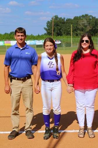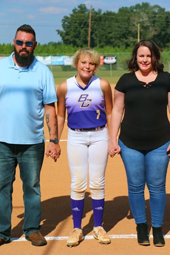 | Emmie Williams escorted by Scott and Mary Ellen Williams. |