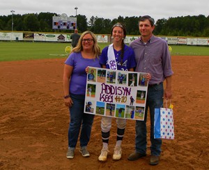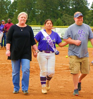 | Reagan Wimberly escorted by Gail and Kevin Wimberly. |