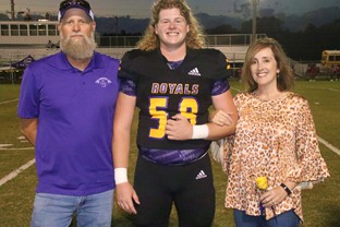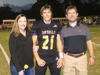 Dawson Sanders escorted by Travis and Amy Sanders.