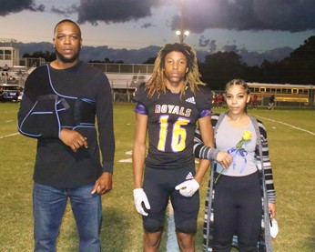 Quintavis Slappy escorted by David Woodard and Candice Slappy.