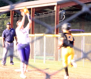 Kenna Bowman squeezes a catch at first base.