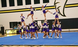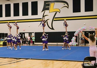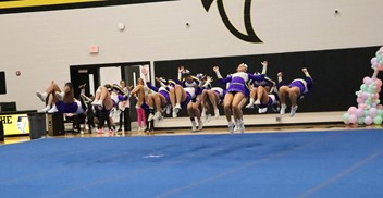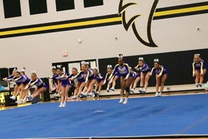 Bleckley had a good day on the mat. They were energetic, their timing was good, their tumbling was good. A stunt group did come down early, but the flyer was caught so that she didn’t hit the floor.