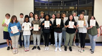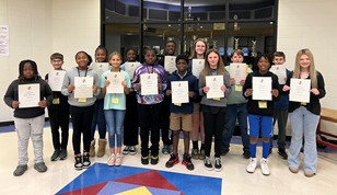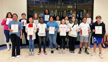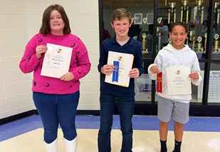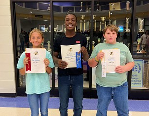Sixth grade participants: Blake Allen, Jeremy Anderson, Kayla Anderson, Shamy Anderson, Zoe Baldino, Zaylen Byrd, Ava Cackett, CJ Darsey, Adalynn Floyd, Mason Herndon, Caleb Lester, Ah’Zariaya Owens, Keilen Simeton, Presley Tarpley, and Jamir Williams. Winners were: Third place, CJ Darsey. Second place, Zoe Baldino. First place, Jeremy Anderson.