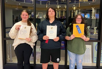 Eighth grade participants: Atalyah Aiden, Karissa Allen, Za’Cari Beck, Raidan Black, Ahlexia Brown, Adrianna Colon, Connor Cumbee, Hailey Faulk, Ellie Hart, Josh Knox, Kaylee Long CJ Pannell, Jaxzen Pettys, Kylie Pitzer, Cullen Senters, and Jace Tucker. Winners were: Third place, Kaylee Long. Second place, Raidan Black. First place, Adrianna Colon.