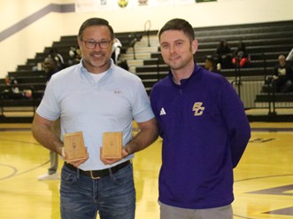 Bleckley ACE Hardware and Fisher Funeral Home were Tuesday night's game sponsors. Pictured with boys head coach Garrett Collins is Brian Lucas.