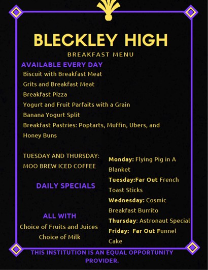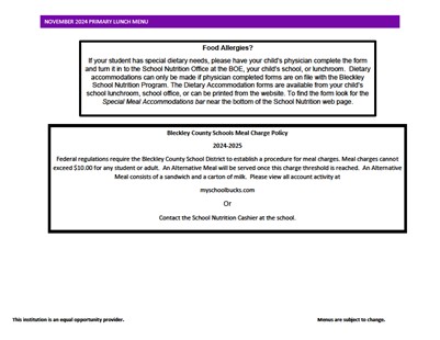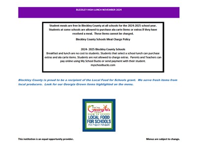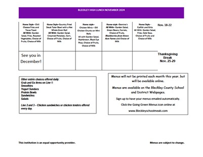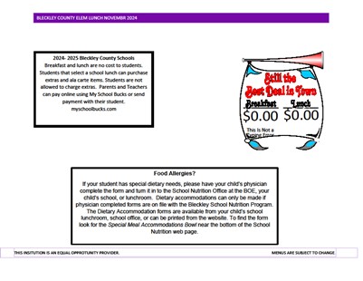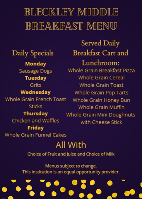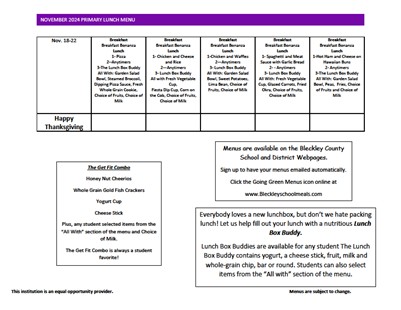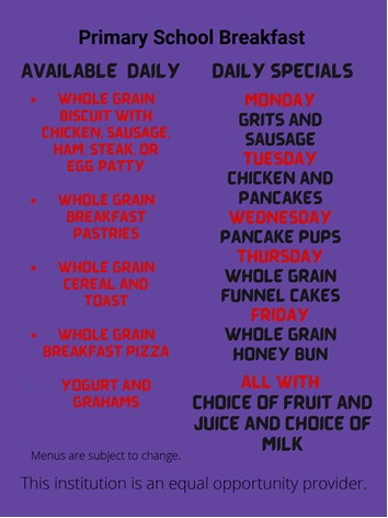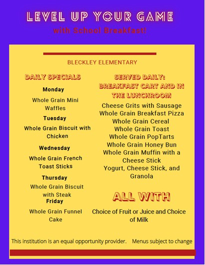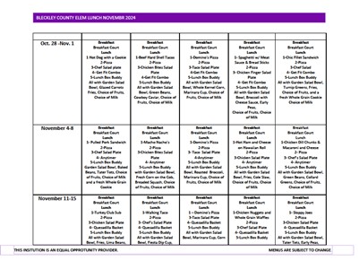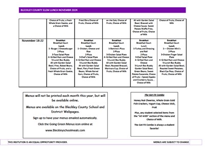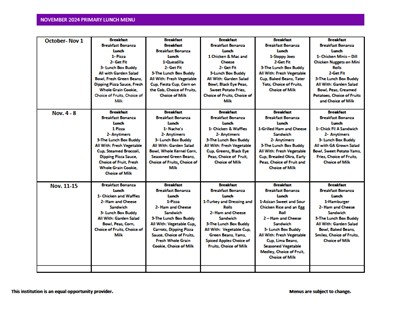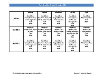 Here's what the school nutrition staff will be preparing for breakst and lunch this month.