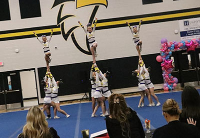 Despite the adjustments, BC had what was described as their best performance of the season. High energy. Good jumps, good tumbling. The execution was great, all the stunts stuck. Supporters gave the squad a loud ovation after the performance ended.