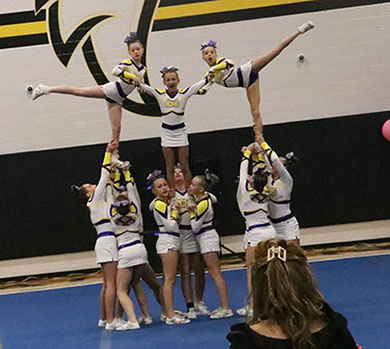 As is the case sometimes in all sports, especially late in the season, the BCMS Competition Cheerleaders were dealing with multiple injuries as they prepared to perform Saturday morning at the East Laurens Falcon Frenzy. They had to pull out of their scheduled trip to Vidalia and have spent the past two weeks making adjustments to the routine.