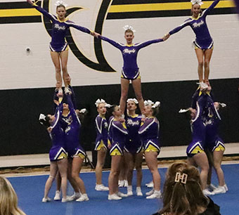 When it was time for results, the Royals finished third. A look at the scoresheets showed there was a deduction on tumbling and two on the pyramid. Coaches Heather Davis and Emily Raley though were overall pleased because the difficulty added did stick and the other things could be worked on in practice.