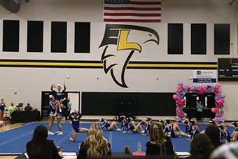 However, a tumbling pass wasn’t thrown. And there were issues with the pyramid. Someone slipped on a full up and someone was dropped in the back. Despite the mistakes, supporters still gave the squad another loud ovation as they exited.