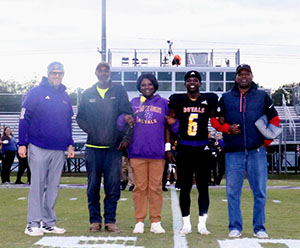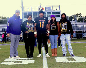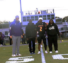 Jahiyan Blackshear escorted by Dionne Stephens and Greg Blackshear.