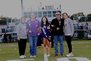 Anna Claire Dean escorted by Jason, Tanya, and Anderson Dean.