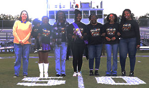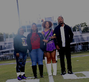 Kamari McNair escorted by Cherrie McNair and Alvin McNair.