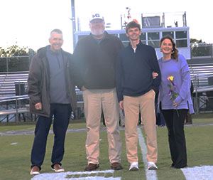 Zach Gilbert escorted by Nathaniel and Shanda Gilbert.
