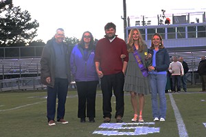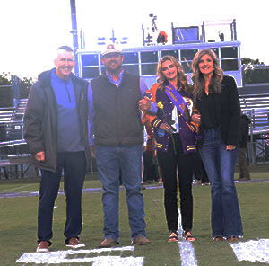 Scout Totty escorted by Lonnie Totty and Candace Hunnicutt.