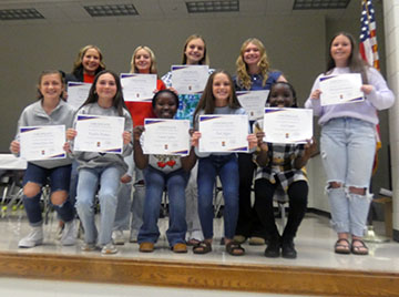 All the players received gift bags and their athletic certificates. Specific awards were as follows. Academic award: Blakelyn Bessenbacher, Cai Cumbee, Emily Ferrell, Augusta Finch, Krista Grace Sims, Kate Skipper, London Stephens, Gracie Terry, Raylann Widner, Kate Williams.