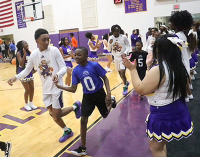It was CBRD night. Rec. department basketball players got to run out with the varsity teams. Pictured are the CBRD boys players running out with the Royals.