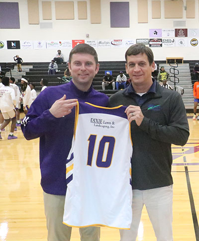Dixie Lawn and Landscaping was a game sponsor. Pictured with boys head coach Garrett Collins is Josh Wilson.