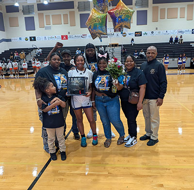 Kalyria Jones scored her 1,000th career point Tuesday night. She's pictured with family and girls head coach John Stanley.