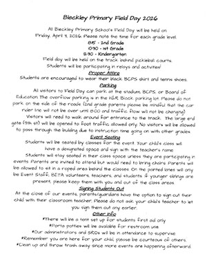 Information about upcoming Bleckley Primary Field Day.