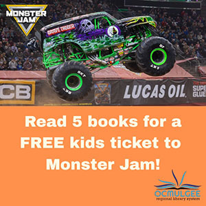 The Ocmulgee Regional Library System announced the Tessie W. Norris/Cochran Bleckley Library is participating in the "Rev up to Read" program. According to a release, children ages 2-12 can earn a free child's ticket to the Monster Jam that will be at the Macon Coliseum May 1-2 with purchase of an adult ticket. Ticket redemption requires a parent or guardian and will take place at the Coliseum Box Office. Stop by the library to get a reading card or for more info.