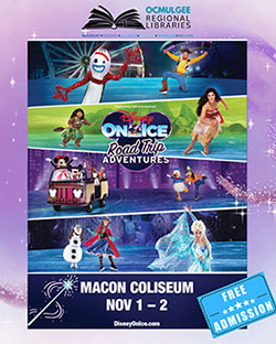 The Disney on Ice “Reading is Cool” program is ongoing at the Tessie W. Norris/Cochran-Bleckley Library. Children ages 2-12 can earn a free ticket to Disney on Ice at the Macon Coliseum November 1-2 by reading five books. According to a release, a child should pick up a Reading Rewards card at the library. Once they read five books, bring it back to be stamped. They can then carry it to the Coliseum box office for a free reserved seat kids ticket with purchase of an adult ticket. For every adult ticket purchased, up to two kids tickets can be redeemed. Full details are on the back of the rewards card. Cards must be redeemed by November 2.