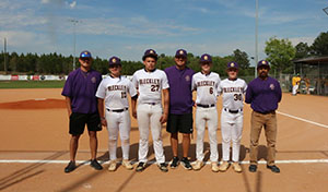 (Photo contributed.) BCMS baseball held eighth grade recognition Tuesday afternoon before their home game versus Dublin. Pictured with coaches Chance Pittman, Austin Simmons, and Zachary Bryant are Max Burke, Drayton Blue, Caleb Hill, and Eli Parks.