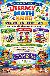 Bleckley Primary Literacy and Math night March 5.