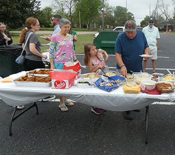 First Baptist Church held "Dinner on the Grounds" Saturday morning. The church provided chicken and drinks with people bringing sides and deserts. Children's Pastor Ryan McWhorter had a unique way of telling the Holy Week story. He called children up and asked them to open an egg. Each egg had a symbol (IE: the Palm of Palm Sunday.) The children then got enjoy some games. FBC will have Easter services tomorrow at 8:30 and 11 am.