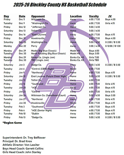 BCHS basketball schedule available to download.