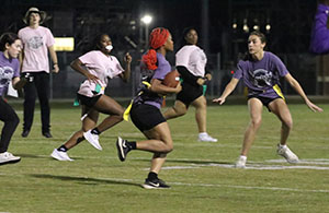 With the Royals off until the playoffs next Friday, Royal Stadium has been quiet this week. However, a different kind of football action took place Thursday evening as the fall Powder Puff tournament took place. All the games were competitive. The Seniors edged the Freshmen 8-0. The Sophomores defeated the Juniors 7-6, earning them a title game berth against the Seniors. In that game, the Seniors got a game-winning touchdown run with about three minutes left to win 13-7.