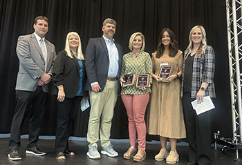 Betsy Rycroft was named both the Bleckley Primary Teacher of the Year and Special Education Teacher of the Year. She's pictured with Dr. Trey Belflower, Student Support Services Director Dr. Cindy Felkins, Jed Evans, BCPS Support Person of the Year Callie Hatfield, and BCPS Principal Dr. Jenna Maddox.