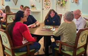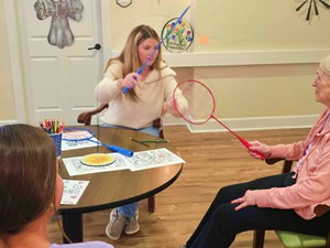 (Photos courtesy Bleckley County High School Beta Club Facebook groups.) Members of the BCHS Beta Club recently visited the residents of At Home Senior Living. They enjoyed playing games, coloring, and also received life advice from the residents.