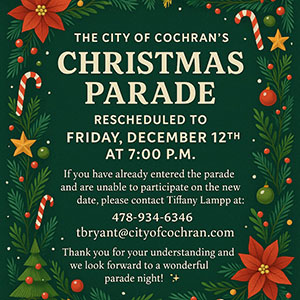 Cochran Masonic Lodge will host Breakfast with Santa December 6 from 7 to 10 am. For $8, enjoy pancakes and sausage plus tell Santa what you'd like for Christmas. Children 12 and under eat free.