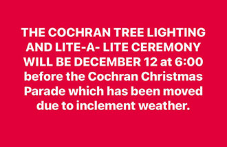 Inclement weather threat postpones Christmas parade, Lite a Lite ceremony, to December 12.
